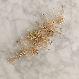 "LISKA" Leaf shaped crystal & pearl hair piece